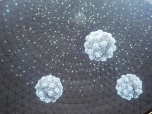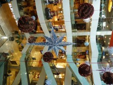 I do not like Santa, as we Czechs have Ježíšek (another cool guy giving gifts), but I am happy to see huge bulbs installations all around. As I miss my family even shining Santa with animals is good. So what, how can I stand plastic tree and plastic decorations when coming from country of hand made glass decorations?